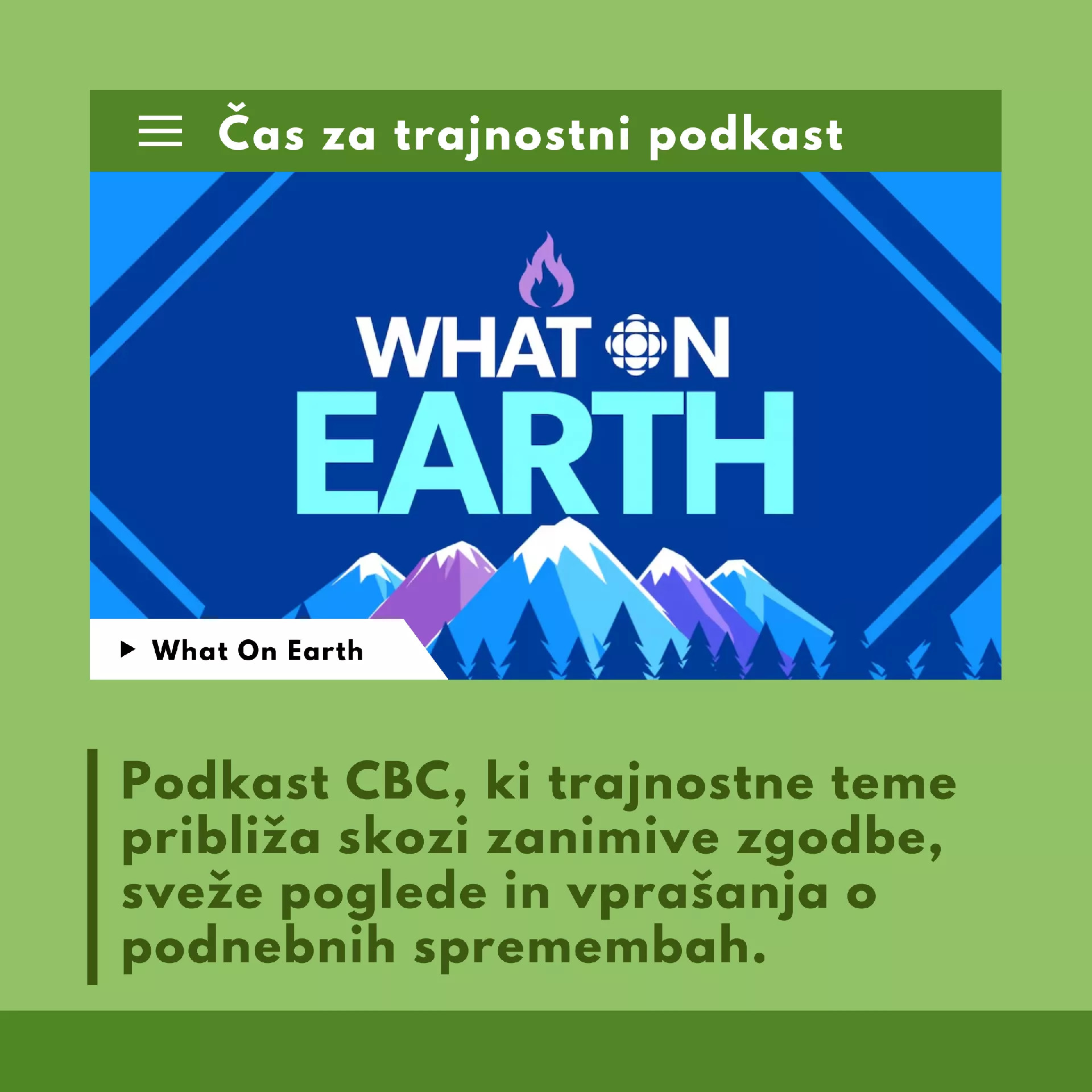 Čas za trajnostni podkast : "What On Earth"